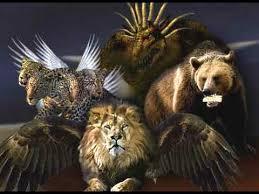 In Chapter 7 four empires are pictured as four beasts. They describe four temporary Gentile Empires, with an emphasis on the fourth, which goes through several stages. Finally, the Fourth Empire will be destroyed by the Fifth Empire, the Kingdom of Messiah, which will last for a thousand years (see Revelation Fh – The Dispensation of the Messianic Kingdom), before the onset of the Eternal State (see the commentary on Revelation Fq – The Eternal State).185The different stages would be viewed as follows: